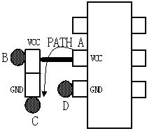 如圖8(b)所示,將過孔B放在電容電源管腳和芯片電源管腳之間,這樣將增加通路A的環(huán)路電感,當(dāng)電容和芯片不是位于同一層時(shí),一般采用這種方式。