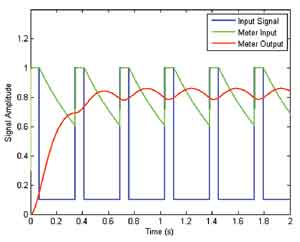 在實時頻譜分析儀中,準峰值檢波器使用數(shù)字濾波器實現(xiàn)??梢允褂脭?shù)字濾波器,如無窮脈沖響應(IIR)濾波器,仿真?zhèn)鹘y(tǒng)EMI接收機使用的RC充電電路和放電電路。這種臨界阻尼表還可以建模為二階數(shù)字IIR濾波器。儀表上顯示的最大值取為準峰值檢波器器值。