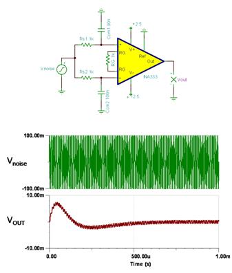 圖 2 INA333 共模濾波的完全輸入 RC 匹配舉例仿真