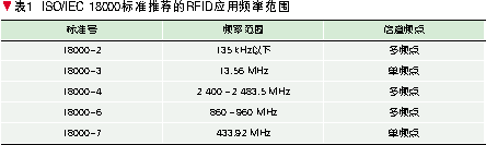 表1為國(guó)際標(biāo)準(zhǔn)ISO/IEC 18000標(biāo)準(zhǔn)系列中推薦RFID設(shè)備使用的頻率范圍。