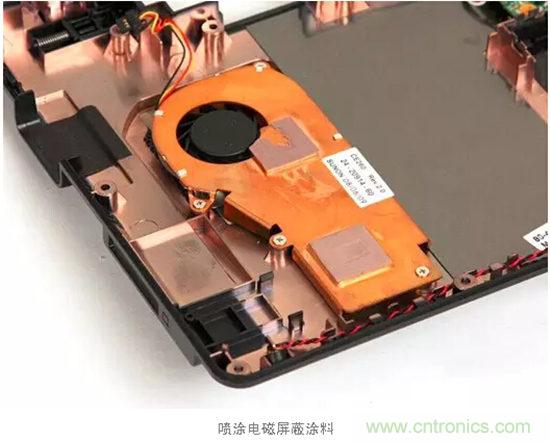 (2)在整個(gè)電子設(shè)備外殼就具有高電磁波發(fā)射能力的電路和器件周圍,添加電磁波屏蔽罩、粘貼金屬箔、噴涂導(dǎo)電涂料、鍍一層導(dǎo)電金屬層、增加電磁波吸收材料。