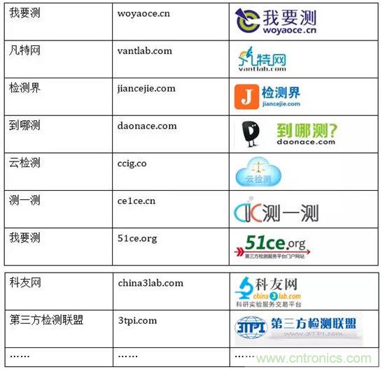 我要測(cè)(woyaoce.cn)、凡特網(wǎng)(vantlab.com)、檢測(cè)界(jiancejie.com)、到哪測(cè)(daonace.com)、云檢測(cè)(ccig.co)、測(cè)一測(cè)(ce1ce.cn)、我要測(cè)(51ce.org)、科友網(wǎng)(china3lab.com)、第三方檢測(cè)聯(lián)盟(3tpi.com)……