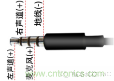 2、耳機(jī)采用的是蘋果標(biāo)準(zhǔn)接口,蘋果耳機(jī)接口圖如下,從圖中可以看出HP_MIC在耳機(jī)母座最外面一個(gè)腳,金屬彈片正好裸露在外面,極易受靜電影響。