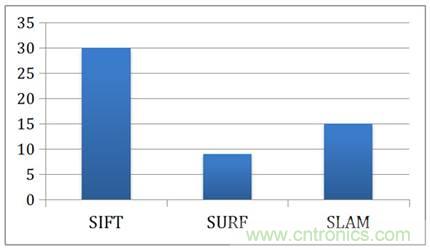 圖6展示了FPGA相對CPU在執(zhí)行SIFT、SURF以及SLAM算法的節(jié)能比。使用FPGA后,SIFT與SURF分別取得了1.5倍與1.9倍的節(jié)能比,而SLAM的算法取得了14倍的節(jié)能比。根據(jù)我們的經(jīng)驗,如果機器人將手機電池用于一個多核的Mobile CPU去跑這一套感知算法,電池將會在40分鐘左右耗光。但是如果使用FPGA進行計算,手機電池就足以支撐6小時以上,即可以達到10倍左右的總體節(jié)能 (因為SLAM的計算量比特征提取高很多)。