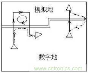 對(duì)于只有數(shù)字電路組成的印刷板的地線系統(tǒng),將接地線做成閉合環(huán)路, 縮小電位差值,可以明顯提高抗干擾能力。而對(duì)于較低頻的模擬信號(hào)來(lái)說(shuō),考慮更多的是避免回路電流之間的互相干擾,所以不能接成閉環(huán)。