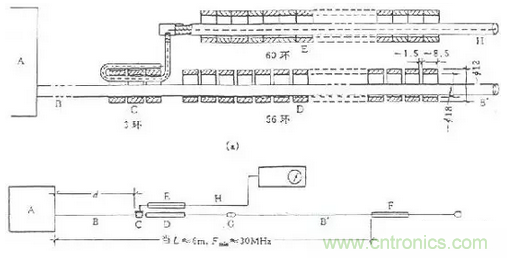(a)功率吸收鉗的結構 (b) 測量布置