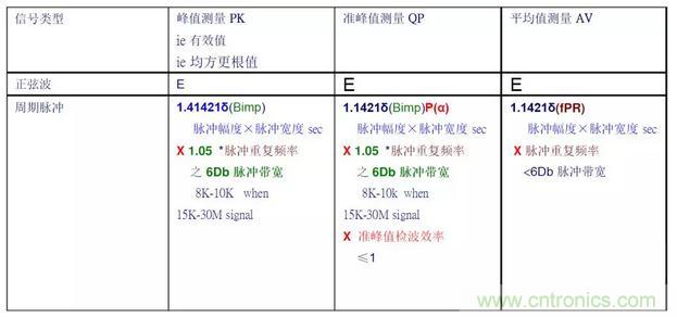 【導(dǎo)讀】最近一個重要客戶的機器測試分別要求測試QP,AV和PK(測試項是EN55022的傳導(dǎo)輻射CE),問起這幾個值之間的數(shù)值關(guān)系。PK QK AV的區(qū)別在于檢波器的RC參數(shù),公式是對標(biāo)準(zhǔn)的理想正弦信號而言。在電磁兼容測試工程實踐中,時變的信號目前是沒有公式去算的。