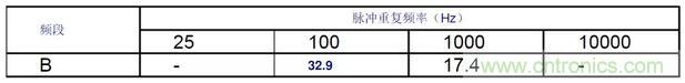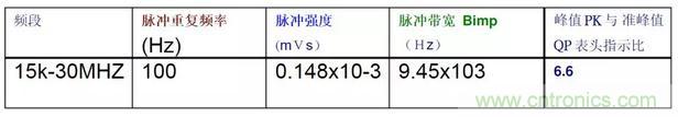 由表可知,峰值測量結(jié)果≥準(zhǔn)峰值測量結(jié)果。下表中中列出了輸入標(biāo)準(zhǔn)脈沖,在標(biāo)準(zhǔn)寬帶情況下峰值與準(zhǔn)峰值表頭指示之比值。峰值測量時的絕對脈沖特性
