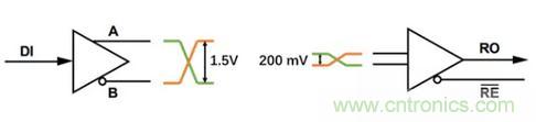 當(dāng)RS-485芯片接受到差分電壓大于200mV時,RO腳輸出低電平,而本身DI可以輸出1.5V的差分電壓。因此有足夠的余量來支持長距離傳輸以及各種環(huán)境噪聲的干擾。