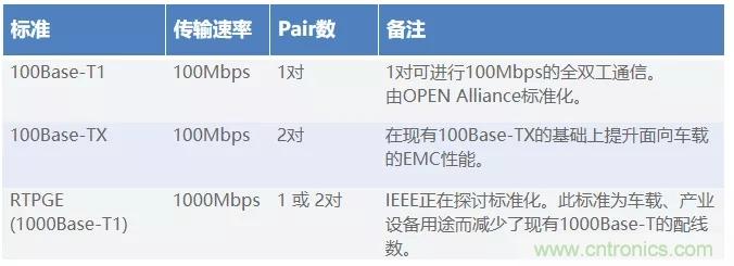表2:車載Ethernet標(biāo)準(zhǔn)