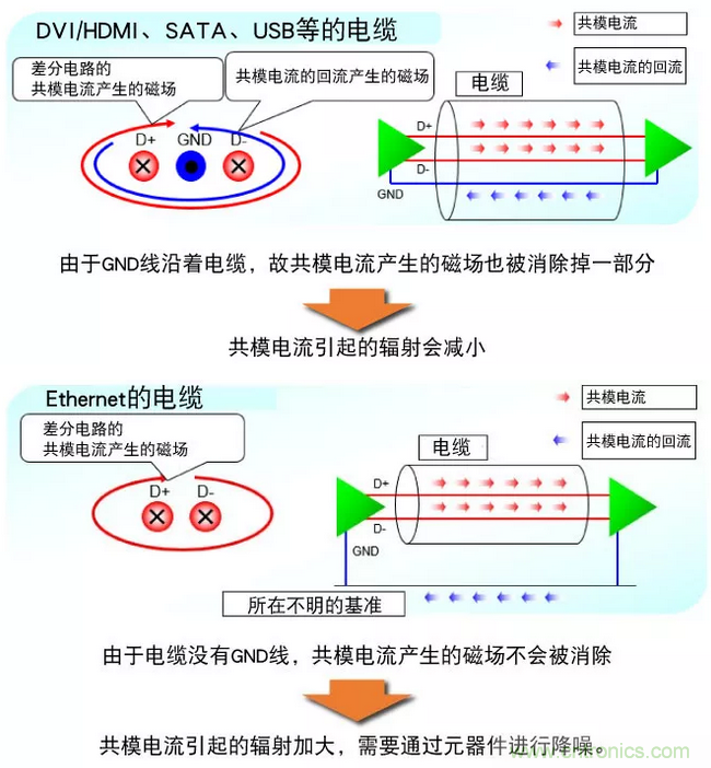Ethernet等差分信號傳輸中因各種原因共模電流會產(chǎn)生噪聲。