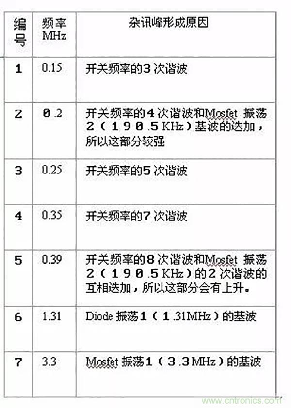 如圖:一些頻率端與開(kāi)關(guān)電源產(chǎn)生部位的關(guān)系,這只是一般規(guī)律,不要完全相信;既是規(guī)律又不能盡信是為什么?規(guī)律并不是在所有情況下成立,不同電源的差異也很大,所以原理是幫你分析,而不是按照方法去硬套;
