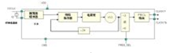 與晶體振蕩器相比,PLL合成器是一種更為復(fù)雜的系統(tǒng)時(shí)鐘源。其中,單從PLL來(lái)講,它通常由相頻檢測(cè)器(PFD)、電荷泵、低通濾波器 (LPF)和壓控振蕩器(VCO)等組成。而通用的PLL合成器時(shí)鐘產(chǎn)生器一般需要外部晶體以及放大反向器,并再通過(guò)完全集成的PLL和邏輯電路來(lái)完成。PLL合成器還可以實(shí)現(xiàn)其它更高的功能和特性,如晶體頻率倍頻、輸出相位校準(zhǔn)、多個(gè)輸出副本和對(duì)輸出進(jìn)行分頻等。圖3顯示 的是典型PLL合成器的結(jié)構(gòu)示意圖。