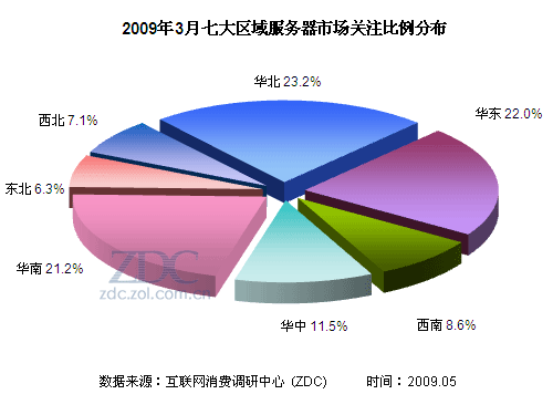 (圖)2009年3月七大區(qū)域服務器市場關注比例分布