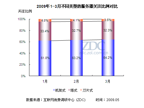 (圖)2009年1-3月不同類型的服務器關注比例對比