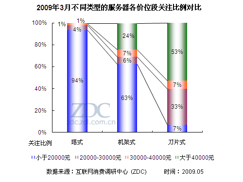 (圖)2009年3月不同類型的服務器各價位段關注比例對比