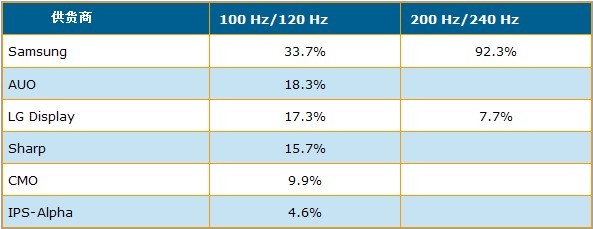 - Samsung出貨量市占率高達(dá)33.7%,AUO出貨量市占率18.3%