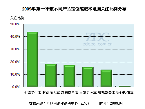 (圖) 2009年第一季度不同產(chǎn)品定位筆記本電腦關(guān)注比例分布