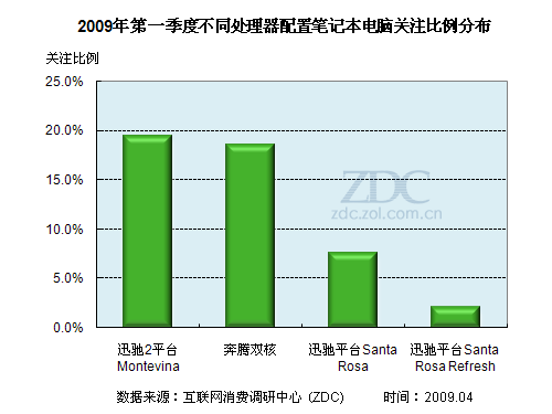 (圖) 2009年第一季度不同處理器配置筆記本電腦關(guān)注比例分布