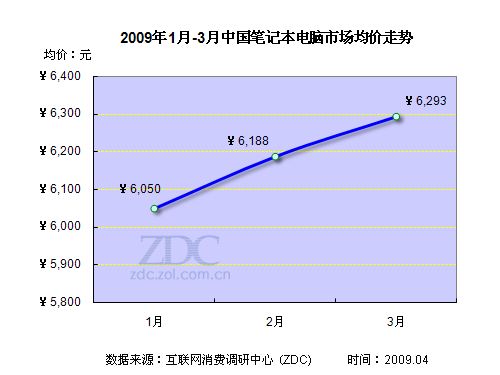 經(jīng)過了幾年的價(jià)格洗禮,如今筆記本已經(jīng)走近了尋常百姓家,再不是高不可攀的奢侈品。根據(jù)ZDC最新的均價(jià)調(diào)查顯示,2009年第一季度,筆記本市場(chǎng)均價(jià)為6000多元。1月份市場(chǎng)均價(jià)為6050元,2月與3月,筆記本市場(chǎng)嚴(yán)重缺貨導(dǎo)致價(jià)格出現(xiàn)上漲,市場(chǎng)均價(jià)在3月份達(dá)到了6293元。