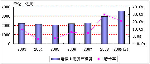 圖1:2003-2009年中國(guó)電信固定資產(chǎn)投資情況