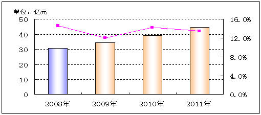 圖3:2009-2011年中國(guó)通信測(cè)試市場(chǎng)規(guī)模預(yù)測(cè)