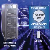 MAX3627和MAX3629具有優(yōu)異的電源噪聲抑制(PSNR),能夠最大程度地減小嘈雜電源對抖動性能的影響,使系統(tǒng)整體抖動指標(biāo)的劣化最小,提高系統(tǒng)時鐘設(shè)計的質(zhì)量,同時也節(jié)省了電路板空間和成本。MAX3627/MAX3629可理想用于以太網(wǎng)接口,例如:企業(yè)交換機(jī)、路由器及其它需要低抖動以太網(wǎng)時鐘的高速數(shù)據(jù)通信系統(tǒng)等。
