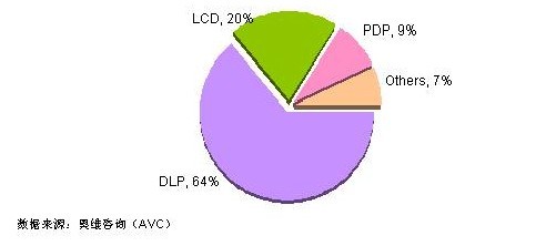 - 2009年上半年,DLP大屏幕占整體市場的64%,LCD占到20%,PDP占9%。