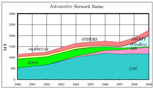圖 汽車總線市場(chǎng) 資料來(lái)源:富士通微電子