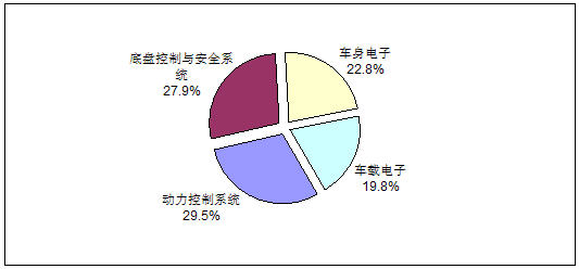 圖2 2008年中國汽車電子市場(chǎng)應(yīng)用結(jié)構(gòu)