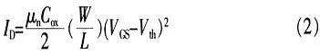 式中,COX是每單位面積的柵極電容。Vth為柵極-源極間的閾值電壓。