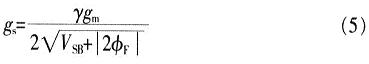 圖2中,gsVs表示第2個(gè)壓控電流源,模擬漏極電流id上的體效應(yīng)。當(dāng)源極與地相連時(shí),或其電壓不變化時(shí),此電流源可忽略。當(dāng)體效應(yīng)不能忽略時(shí),則有:
