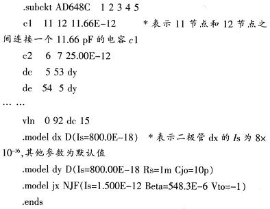 將此種的文本文件存為.lib的后綴名后,通過(guò)ModelEditor工具將該文件與器件符號(hào)聯(lián)系在一起,就可以使用在電路仿真中。圖5為AD648C的簡(jiǎn)單運(yùn)用電路,從圖6瞬態(tài)分析結(jié)果可知建模正確。