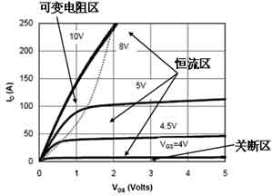 MOSFET的漏極導(dǎo)通特性與開(kāi)關(guān)過(guò)程MOSFET的漏極導(dǎo)通特性如圖2所示。MOSFET與三極管一樣,當(dāng)MOSFET應(yīng)用于放大電路時(shí),通常要使用此曲線研究其放大特性。只是三極管使用的基極電流、集電極電流和放大倍數(shù),而MOSFET使用柵極電壓、漏極電流和跨導(dǎo)。