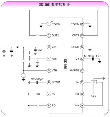 SD1561基于士蘭微電子自行研發(fā)的0.8微米全互補(bǔ)BCD工藝制造,工作電壓范圍為4.5V~16V,最大工作電流1A。電路內(nèi)置了同步整流功能并采用了DMOS管驅(qū)動(dòng),具有極低導(dǎo)通電阻和較高驅(qū)動(dòng)效率,相同功率下,風(fēng)扇的轉(zhuǎn)速可以比其他同類(lèi)電路提高10%以上;高效率和低表面溫度,使其更節(jié)能,更可靠。