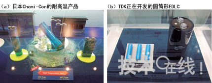 為了高效利用能源,EDLC重新獲得了重視。日本Chemi-Con展出了面向汽車的85℃型號開發(fā)品(a)。TDK參考展出了該公司首款大型圓筒形EDLC(b)。[page]