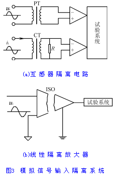 高電壓、大電流信號采用互感器隔離,其抑制噪聲的原理與隔離變壓器類似,這里不再贅述?;ジ衅鞲綦x的應用如圖3(a)所示。