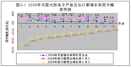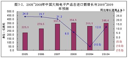 2008年下半年,國(guó)際金融風(fēng)暴席卷全球,以出口為主導(dǎo)的中國(guó)大陸電子信息產(chǎn)業(yè)直接受到?jīng)_擊,產(chǎn)品進(jìn)出口受阻,導(dǎo)致產(chǎn)品產(chǎn)量不斷下降,到今年元月份下降到谷底。由于中國(guó)政府及時(shí)實(shí)行積極的財(cái)政政策,調(diào)整產(chǎn)品結(jié)構(gòu),努力擴(kuò)大內(nèi)需,電子信息產(chǎn)業(yè)從2月份開(kāi)始逐漸回升。雖然在個(gè)別月份有所波動(dòng),但回升趨勢(shì)穩(wěn)定向好。預(yù)計(jì)2009年全行業(yè)能實(shí)現(xiàn)5%左右的增長(zhǎng);進(jìn)出口額雖然有較大幅度的回升,但仍將呈現(xiàn)負(fù)增長(zhǎng);由于政府積極擴(kuò)大內(nèi)需,國(guó)內(nèi)市場(chǎng)將繼續(xù)保持10%左右的較快增長(zhǎng)。