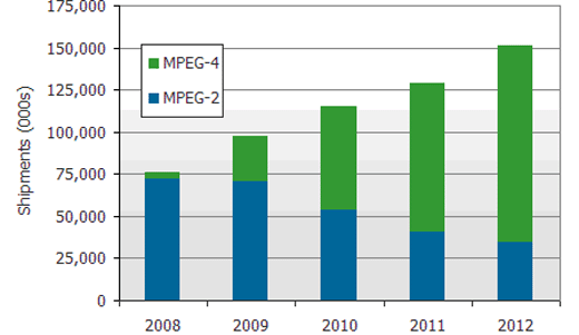 - 估計2010年附有MPEG-4 解碼器電視出貨量將超過MPEG-2