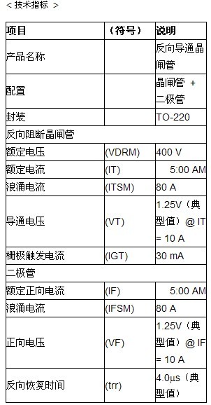注釋?zhuān)?. 反向?qū)ňчl管:晶閘管和整流二極管被整合到單個(gè)元件與反并行配置中。