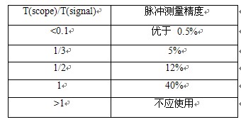 表一, T(scope)/T(signal)與脈沖信號測量精度的關系