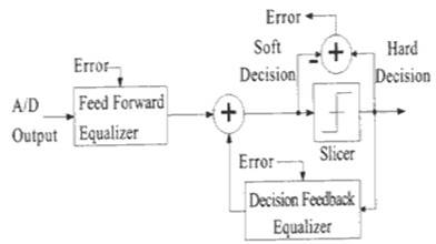 - 判決反饋均衡器Decision feedback equalization (DFE):根據(jù)解碼數(shù)據(jù)改變信號的幅度,一個經(jīng)典的判決反饋均衡器的結(jié)構(gòu)如圖3所示。