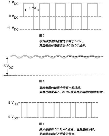 許多信號(hào)包含AC和DC兩種成份。例如不對(duì)稱(chēng)方波就包含這兩種成份。許多聲頻信號(hào)中也含有由DC偏置電流產(chǎn)生的DC偏移,該電流用于驅(qū)動(dòng)輸出晶體管。有些情況需要測(cè)量DC+AC電壓,而另一些情況可能只需要AC成份。對(duì)于這一聲頻例子,放大器增益就是把輸入AC電壓與輸出AC 電壓相比較。