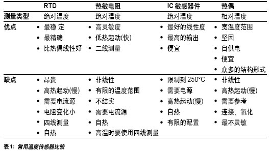 (RTD)、熱敏電阻、IC溫度感應(yīng)器件和熱偶。它們各有自己的優(yōu)點(diǎn)和缺點(diǎn)。