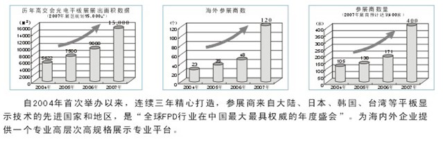 ●“光電平板顯示展”將吸引知名FPD企業(yè)的高管(日立、夏普、三星、LG、友達、華映等)、通路商的高管、政府要員、技術人員等近五萬人到場,同時組委會將通過國內外相關行業(yè)協(xié)會、商會組織專業(yè)士參觀。