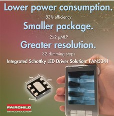 這款升壓LED驅(qū)動器在1.2MHz開關(guān)頻率下運作,并集成了一個肖特基二極管,可最大限度地減小外部無源組件和總體線路板空間的體積。使用FAN5341的簡單單線接口,設(shè)計人員可將數(shù)字脈沖從微控制器傳向FAN5341,從而輕易控制LED的亮度水平。此外,由于這款照明解決方案驅(qū)動三至五個串行LED,因此每個LED所通過的電流都相同,確保達(dá)到同等的亮度。此外,該器件提供高達(dá)83%的效率,能夠最大限度地減少功耗,滿足便攜設(shè)計之空間和功耗需求。FAN5341采用緊湊的薄型2mm×2mm UMLP封裝。