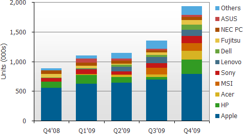 - 2009年AIOs出貨量超過(guò)550萬(wàn)臺(tái),年成長(zhǎng)率高達(dá)57%