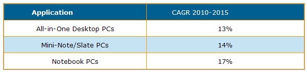 表1:2010-2015按應(yīng)用別PC年復(fù)合成長(zhǎng)率