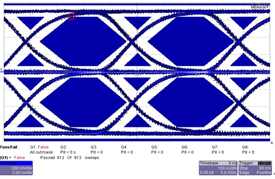 2)傳輸變壓器,工程師將一款測(cè)試通過(guò)的產(chǎn)品的Transformer與當(dāng)前單板的Transformer進(jìn)行互換后測(cè)試結(jié)果一致,眼圖測(cè)試依然不通過(guò)。(請(qǐng)注意這里并沒(méi)有對(duì)變壓器進(jìn)行變比以及差損,回?fù)p等技術(shù)指標(biāo)的測(cè)試)