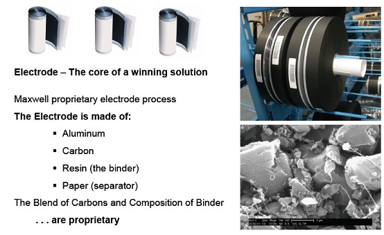 超級電容器的面積來自一個多孔的碳基電極材料。這種材料的多孔結(jié)構(gòu),允許其面積接近2000平方米每克,遠遠大于通過使用塑料或薄膜陶瓷。超級電容器的充電距離取決于電解液中被吸引到電極的帶電離子的大小。這個距離(小于10埃)遠遠小于通過使用常規(guī)電介質(zhì)材料的距離。巨大的表面面積的組合和極小的充電距離使超級電容器相對傳統(tǒng)的電容器具有極大的優(yōu)越性。